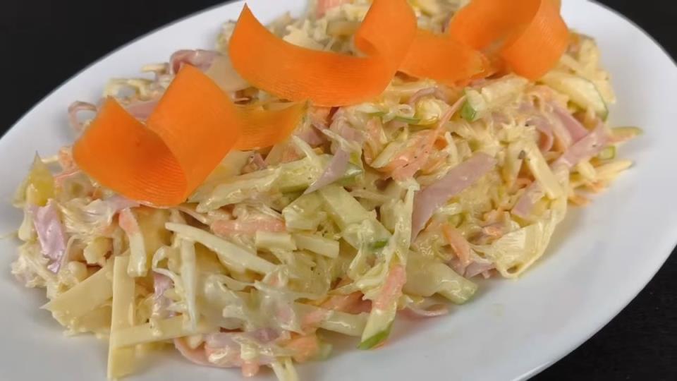 Ova lagana i ukusna salata savršena je kao prilog uz bilo koji obrok, a može biti i lagana večera. Kombinacija povrća, šunke, sira i jabuke daje bogatstvo ukusa, dok kremasti dresing sve sjedinjuje u savršenu celinu.