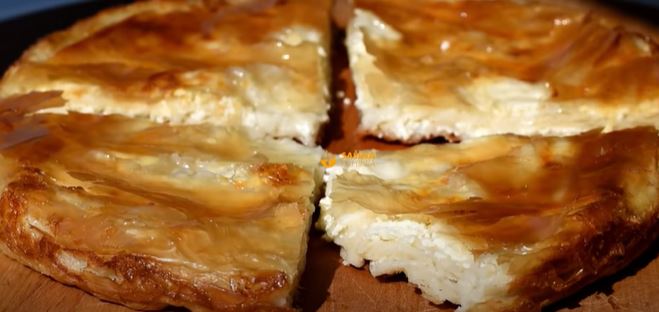 Sada preokrenuti i narezati na 4 dijela te poslužiti. Okus je savršen, kao da ste ga maloprije kupili u pekari ali sa puno više sira naravno. Poslužiti uz jogurt, kiselo vrhnje (pavlaku) ili slično. Ja ga tradicionalno pripremam kao ručak bez mesa u kombinaciji sa juhom od rajčice