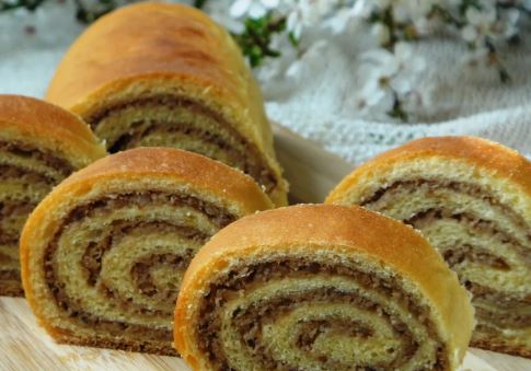 Fil je čvrst i teško se razmazuje. Treba ga staviti na tijesto u malim hrpicama i razmazati pomoću vilice. Nakon toga čvrsto zarolati tijesto s filom. Pomažete si sa stolnjakom kojeg podižete kad rolate. Lakše je rolati sa svake strane i kasnije prerezati po sredini da se dobiju 2 štruce.