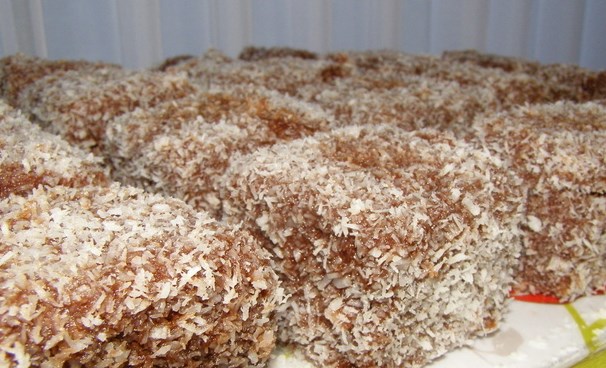 Kockice biskvita ubaciti u umak, okretati da upije čokoladu sa svih strana (pomozite si pinjurom), ocijediti, te staviti u pijat sa kokosovim brašnom da se kokos zaljepi sa svih strana