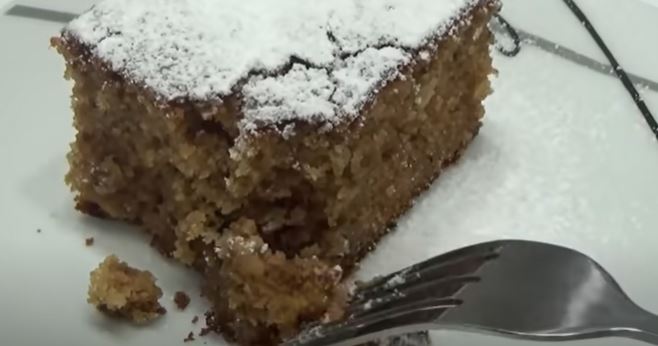 Sve sastojke sjediniti izliti u pleh 25/35cm. Peći u zagrejanoj rerni na 200c/25min. Kad se prohladi posipajte šećerom u prahu, glazurom od čokolade ili jednostavno premažite džemom i posipajte mlevenim orasima.