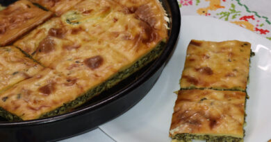 Operite i iseckajte ili iscepkajte spanać pa ga prelijte sa ključalom vodom i ostavite sa strane da odstoji. Ako više volite možete ga i prebariti, ali mislim da nema potrebe.Umutite jaja pa dodajte ostale sastojke. Na kraju dodajte spanać koji ste ocedili od vode i sve lepo promešajte. Siajte u nauljen pleh srednje veličine i ubacite u već zagrejanu rernu pa pecite na 200 C oko tridesetak minuta.