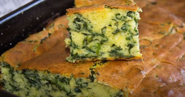 Operite i iseckajte ili iscepkajte spanać pa ga prelijte sa ključalom vodom i ostavite sa strane da odstoji. Ako više volite možete ga i prebariti, ali mislim da nema potrebe.Umutite jaja pa dodajte ostale sastojke. Na kraju dodajte spanać koji ste ocedili od vode i sve lepo promešajte. Siajte u nauljen pleh srednje veličine i ubacite u već zagrejanu rernu pa pecite na 200 C oko tridesetak minuta.