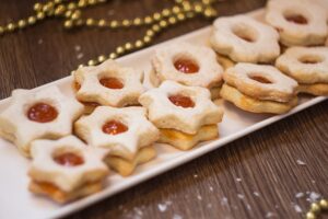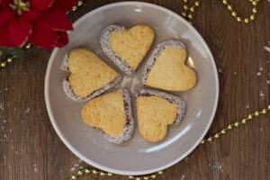 U ovaj deo testa nećemo dodavati nikakve ukuse već ćemo na pobrašnjavoj podlozi rastanjiti testo i modlicom vaditi oblike. Poredjate u pleh obložen papirom za pečenje pa čepom napravite rupice za gornji deo vanilice. Pecite ih u već zagrejanoj rerni na 180 C deset minuta. Kada se malo ohlade keksiće sa rupicama pospite sa malo šećera u prahu. Spajajte keksiće uz pomoć omiljenog džema.