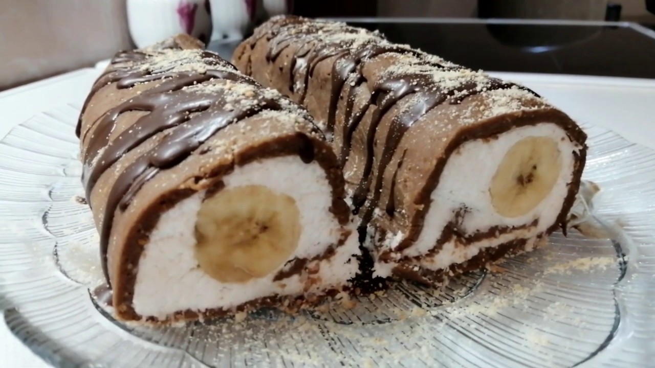 Ovo je posni rolat koji se sprema za 5 min,da,daaa,za 5 min,jedino posle mora da se stegne,ali njegova priprema je za 5 minuta.Ovaj posni i kremasti rolat je neverovatno ukusan i prosto se topi u ustima,Kad god vam se prijede nesto slatko, ovaj banana rolat ce biti vas farorit.Uzivajte!!!!