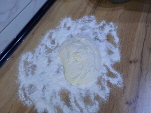 Umijesim mekano tijesto (ako je potrebno, dodam još malo brašna). Pokrijem krpom i ostavim da naraste 30–40 minuta.