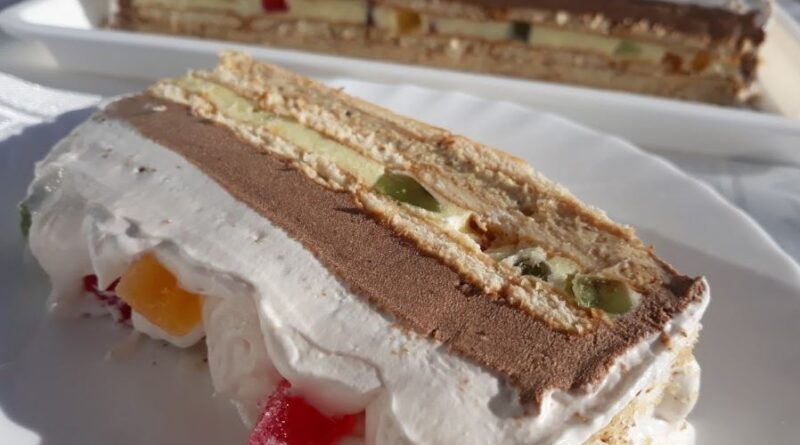 Ukusna, kremasta, izdašna torta koja se brzo priprema bez pečenja kora. Torta sa keksom, orasima i žele bombonama, po ukusu se ne razlikuje od torti koje nisu posne.