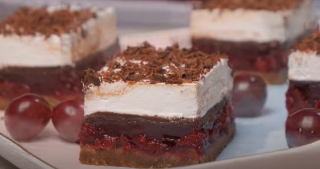Otopljenu čokoladu prelijte preko želea od višanja, malo opet sve zagladite, pa prodrmajte pleh ili tacnu, da sve lepo “legne”