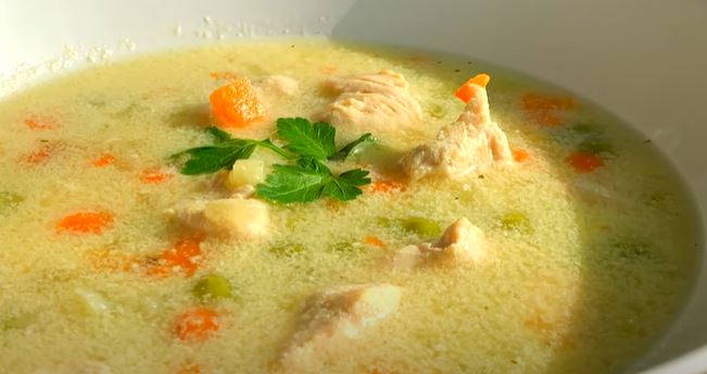 Na ulju prodinstati luk, dodati grašak i seckanu šargarepu. Ulijte vodu i dinstajte 15 minuta. Dodajte oprani pirinač, posolite, pobiberite i kuvajte oko 10 minuta.