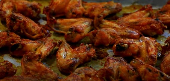 Krilca prosušite, posolite i umešajte u napravljenu mešavinu, složite na veliku tepsiju, neka ispod bude pek papir. Pecite u zagrejanoj rerni na 200 stepeni. Prvo 30 minuta, izvadite okrenite ih pa još deset-petnaest minuta. Prijatno!