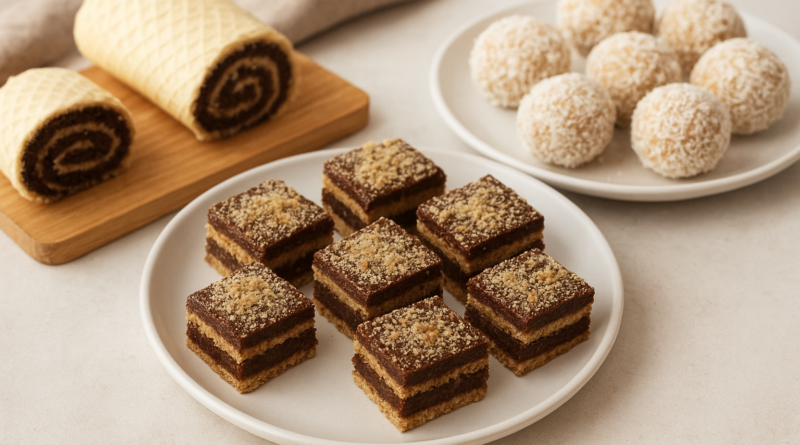 Ako imate jedno obično pakovanje oblandi, nemojte ga potrošiti samo na jedan kolač – od istog fila možete napraviti tri različite poslastice: kocke, rolat i kuglice. Ovaj recept je savršen kada želite da iz jedne smjese dobijete bogatu, raznovrsnu slavsku tacnu, a pritom da sve završite brzo i bez pečenja.