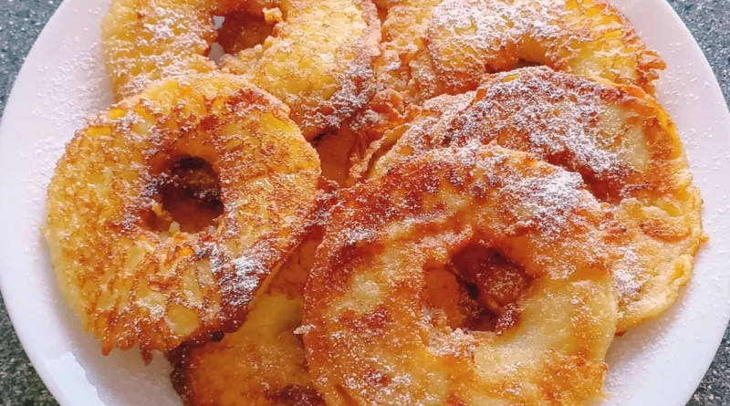 Kriške jabuka staviti u smjesu pa u vrelo ulje i pržiti dok ne porumene sa obje strane.