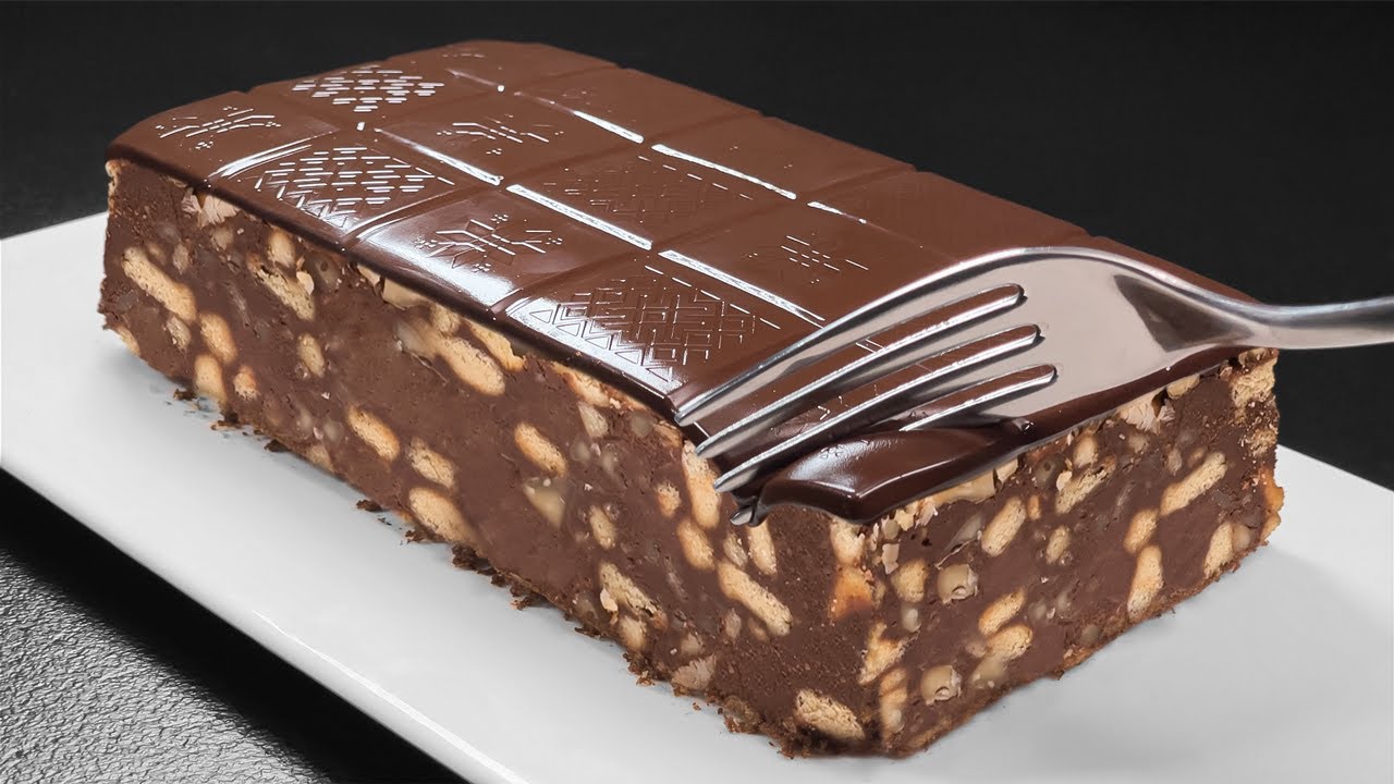 Jaja umutite penasto sa šećerom, pa dodajte prosejano brašno, skrob i kakao. Dobro sjedinite smesu, pa sipajte ulje i promešajte. Na kraju dodajte keks koji ste izdrobili i promešajte. Sipajte u kalup koji ste obložili pek papirom i koji ste malo nauljili. Sipajte smesu, poravnajte i pecite na 170°C oko 35 minuta. Izvadite, preko stavite celu čokoladu i vratite u rernu koja je vrela, ali koju ste isključili na još 5-10 minuta.