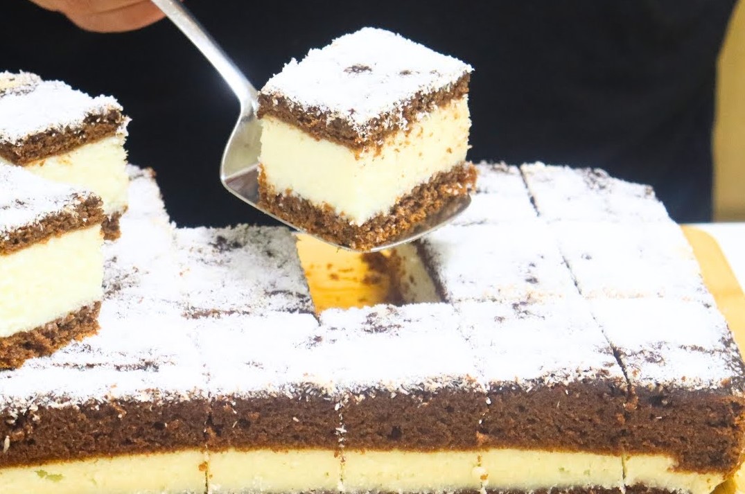 Peći u zagrejanoj rerni na 180c./8min. zatim dodati fil i drugi deo biskvita pa nastaviti na istoj temperaturi još 12min.