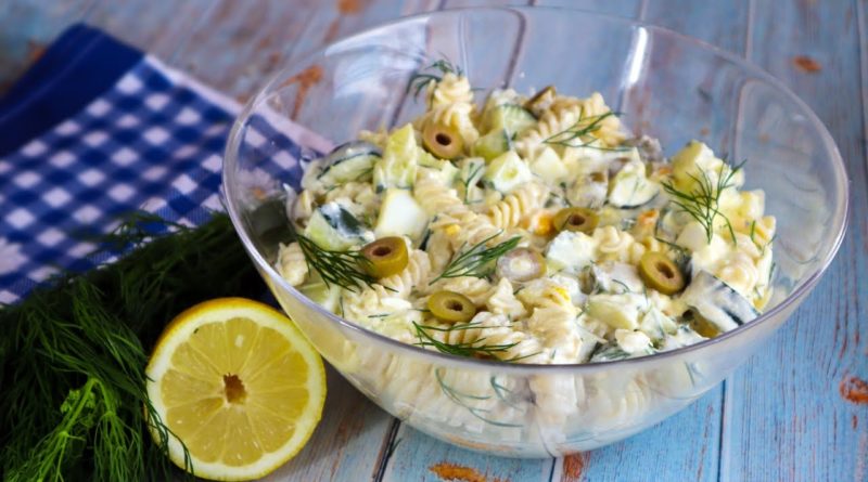 Obožavam hladne letnje salate sa makaronama a ova je baš takva. Inspiracija za ovu salatu je svakako bila Grčka pa sam se trudila da u njoj bude Feta sira, maslina i malo maslinovog ulja. Kombinacija krastavca i belog luka da nas podseti na tzatziki salatu u kombinaciji sa testeninom je prava obrok salata. Naravno ukoliko volite možete dodati i malo šunke ili kuvane piletine.