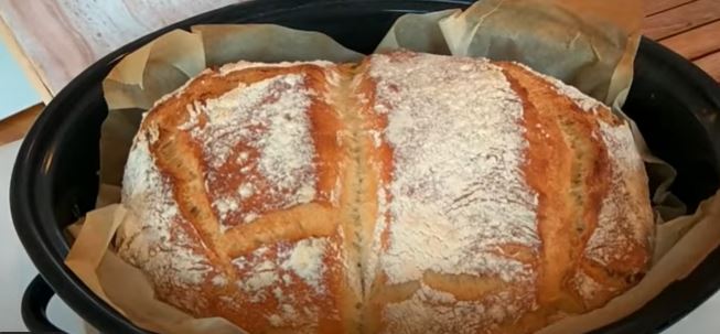 Hljeb pečemo u zagrijanoj rerni na 250 stepeni 40 minuta i još bez poklopca 20 minuta na 200 stepeni.