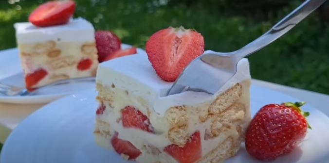 Keks kolač sa jagodama I bananama, gotov za 10 min