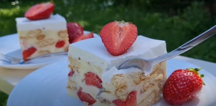 Keks kolač sa jagodama I bananama, gotov za 10 min