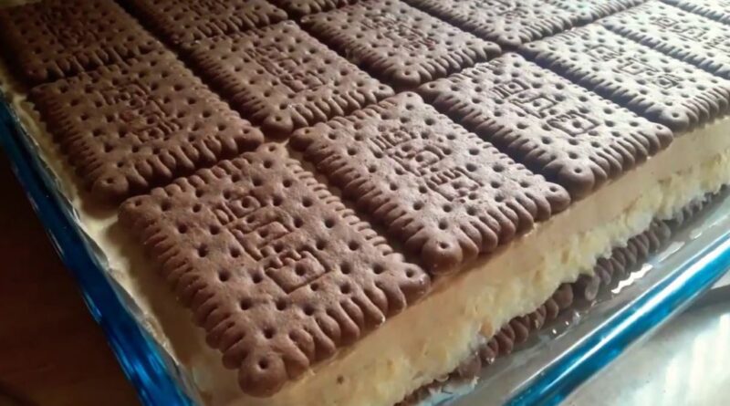 Poređajte kekse u činiju. Stavite pripremljenu kremu.