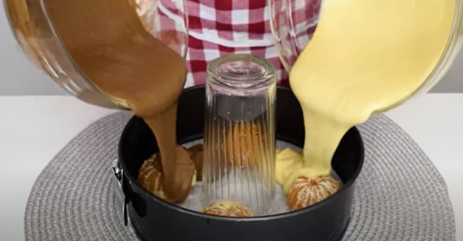 Sve promešati, preliti preko mandarina i dodati da se zapeku. Dok kuvate kafu ili čaj, kolač je spreman. Savršeno je za lijeno popodne. Torta je jako ukusna i zanimljiva jer možete birati da li želite bijelu, crnu ili crno-bijelu stranu torte. Mandarine daju dodatnu sočnost kolaču.