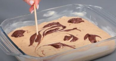 Sve sastojke izmiješati i istresti u podmazanu i pobrašnjenu tepsiju i peći na 180 °C oko 45 minuta.