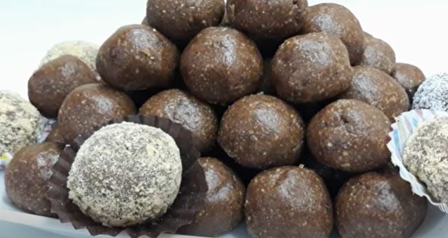 sve sastojke sjediniti i smesu ostaviti 15 min u frizider da se malo stegne zatim oblikovati kuglice po zelji.