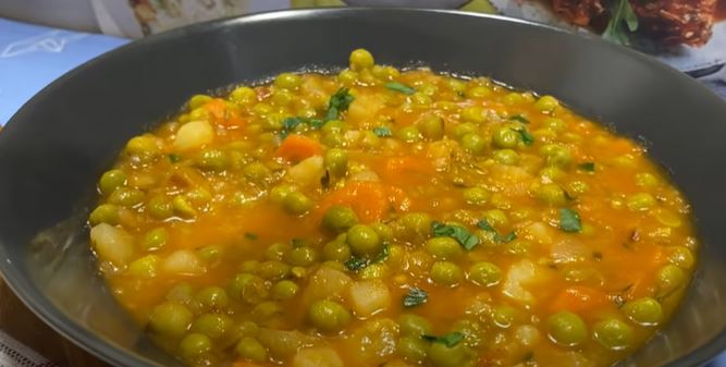 U samom videu ja vam govorim sta i koliko sam ja stavila za nas troje. 1 veca glavica luka,3 mrkve,2 krompira,1 veca tikvica,1 čaša paradajz soka ili jedan veći paradajz,1 kg graška,so, biber i prešun.
