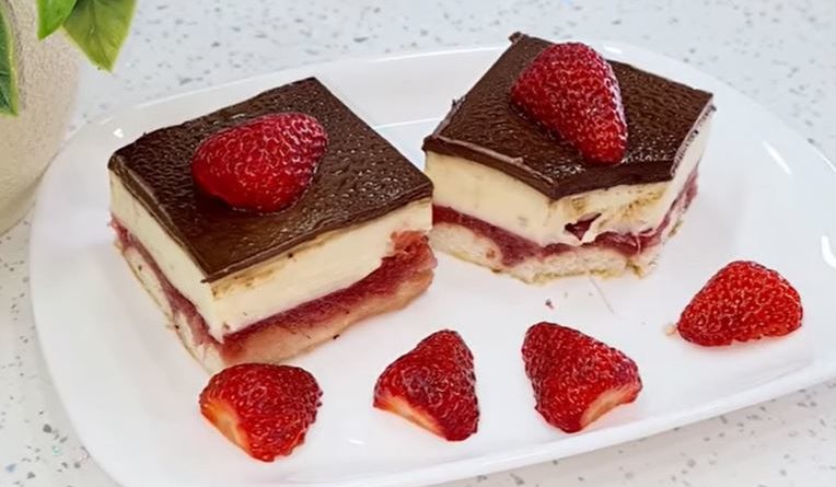 LEDENE KOCKE SA JAGODAMA NE PECE SE KREMASTA OSVEZAVAJUCA POSLASTICA