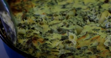 Pokrijem tepsiju folijom i pečem na 200°C oko 40 minuta. Nakon toga skinem foliju i pečem još 20 minuta da se sve fino zapeče i dobije zlatno-rumenu boju.