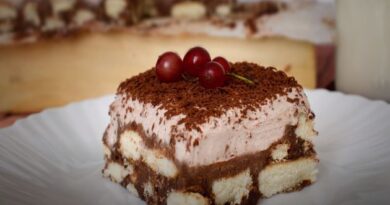 Potom dodajte kakao, pa smesu ostavite da se ohladi u činiji prekrivenoj prozirnom folijom. Sa ohlađene kore za čokoladnu tortu skinite pek papir, pa je podelite uzdužno na 3 jednaka dela.