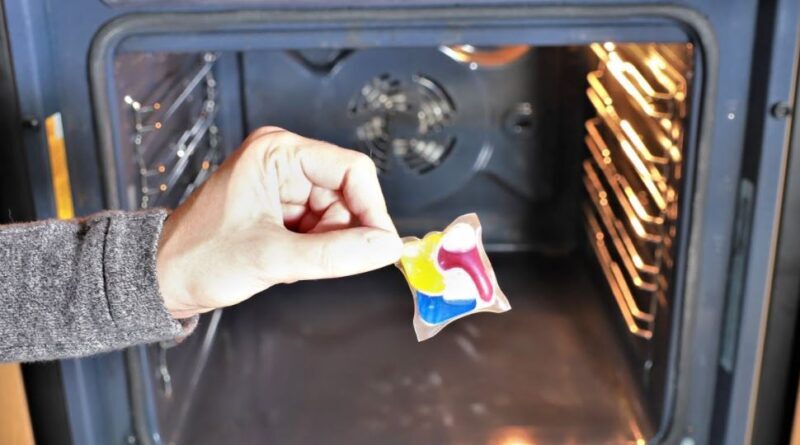 U činiju sipajte toplu vodu, pa umočite malo tablete kojoj ste prethodno skinuli foliju i istrljajte rernu. Ako je potrebno iskoristite još jednu tabletu.
