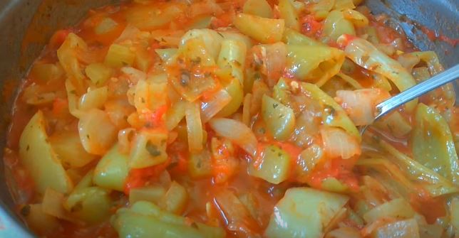 Lagano kuhati dok se svi sastojci sjedine, da paprika omekša, provjerimo..