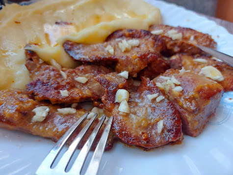 Ostaviti na laganoj vatri pa kad porumeni okrenuti pa je pred kraj džigericu posoliti. Serviti sa krompir pireom .