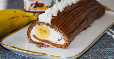 Izfilujte pa dekorišite po vašem ukusu. Možete preliti otopljenom čokoladaom i posipati mlevenim orasima.