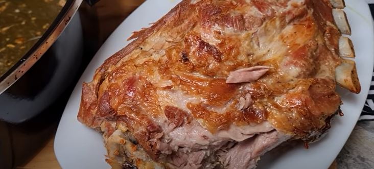 Posoliti i zaciniti meso sa svih strana. Duboki pekac premazati uljem ili staviti mast na dno. Staviti meso I sipati 100ml vode. Poklopiti I peći 1h na 220°C. Posle 1h okrenuti meso, proveriti koliko ima vode i dodati još oko 100ml, poklopiti I nastaviti peći 1h na 180°C. Posle 2h sata okrenuti meso po potrebi dodati još malo vode i peći još 1h na 170°C. Posle 3h skinuti poklopac I zapeci meso još oko 20 min na 200-220°C da dobije lepu boju. Izvaditi I pokriti folijom.