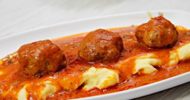 Izvadite tepsiju iz rerne, dodajte poprženu crvenu papriku i po vrhu rasporedite ćufte. Tepsiju ponovo pokrijte poklopcem i vratite u rernu na 15 minuta na 200°C.