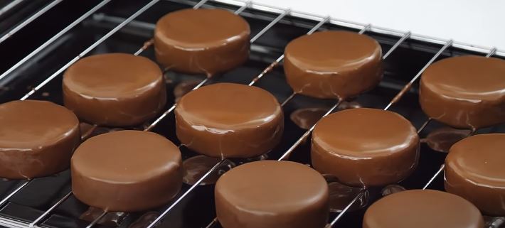 Stavite u frižider na 30 minuta. Umočite u čokoladu koju ste istopili na pari. Ređajte na rešetku i ostavite da se slegne, pa služite. Prijatno!