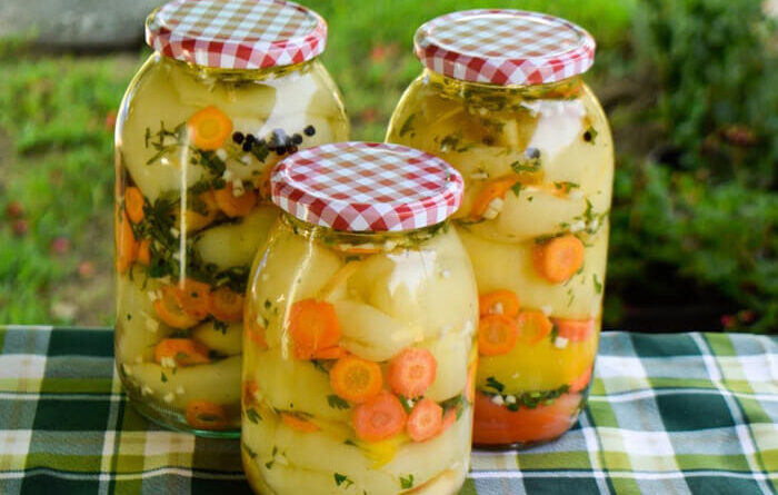 Ovako pripremljene paprike će biti meke i sa lakoćom ćete ih ređati u tegle dodavajući im i ostalo povrće. Tegle je potrebno napuniti do vrha pa ih preliti vrućom tečnošću u kojoj su se paprike prethodno kuvale. Ukoliko nemate pristiskač onda možete zaglaviti papriku uz pomoć drvenih ražnjića koje je potrebno prepoloviti i zaglaviti tako da paprike ostanu prekrivene tečnošću. Zatvorite tegle čistim poklopcima pa ih pasterizujte.