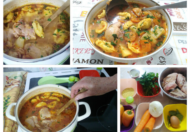 Na ulju izdinstati seckan luk, dodati seckanu šargarepu, kao i seckanu zelenu papriku, kad se to izdinsta dodati mlevenu crvenu papriku, , ajvar lovorov list, kao i šolju ml. paradajza ili 2 sveza paradajza. U to dodati isečen krompir i pileće meso, naliti vodom i staviti da se kuva.