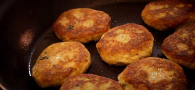 U ohlađeno umešati brašno i praviti pljeskavice.