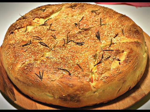 Sastojci i priprema: 40 gr. kvasca, 400 ml. mlake vode, 700 – 800 gr. brašna, 2 kašičice soli (plus da se posoli krompir), 2 kašičice šećera, 100 ml. ulja, 4 srednja krompira, 150 gr. posnog margarina, 3 – 4 kašike posnog majoneza, susam.