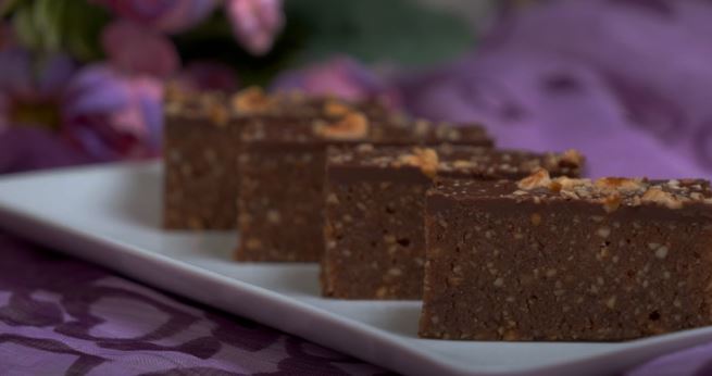 Skloniti sa vatre, pa odmah umešati lešnike i keks i dobro promešati.