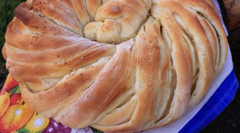 Zatim premesiti podeliti na tri jufke. Svaku jufku razviti u dužinu. Na prvu namazati omekšan margarin, zatim staviti drugu razvijenu jufku, premazati margarinom i odgore staviti treću. Iseći trakice i uviti kao na video snimku. Zaviti u puža i staviti da se peče na 200 stepeni oko 30 minuta ili dok lepo ne porumeni.