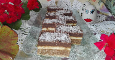 Usuti smesu u pleh (veličine 25 x 25 cm) obložen papirom za pečenje pa je dobro utisnuti i utapkati i lepo poravnati da se sve lepo složi.