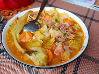 Meso staviti u šerpu i naliti vodom da ogrezne i kuvati oko 20 minuta. Kupus iseći na krupne komade.