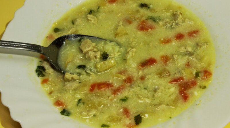 Dodati iseckano meso (sve na kockice), naliti 2 litre vode i kuvati dok ne omekša. Posebno umutiti senf, majonez, pavlaku, brašno sa malo vode. Čorbu začiniti i dodati smesu od pavlake. Kuvati još malo i poslužiti. Prijatno.