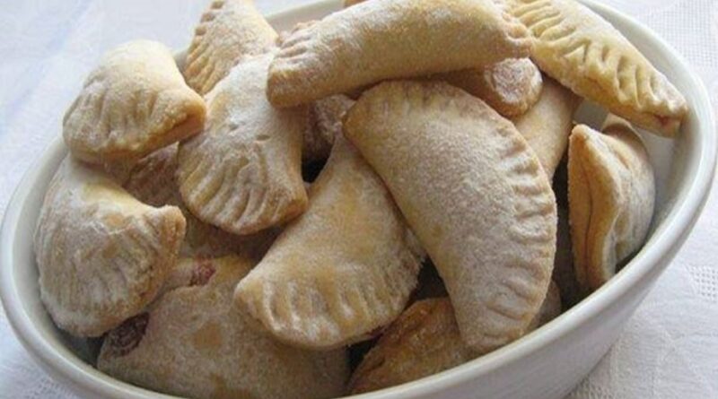 Preklopiti i na rubovima stisnuti vilicom da se zatvori i dobije jastučić. Peći na 180°C dok ne porumene.