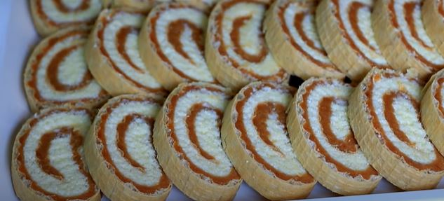 Vruć fil premažite preko karamel fila i odmah umotajte rolat. Ostavite par sati u frižideru da se stegne i izrežite.