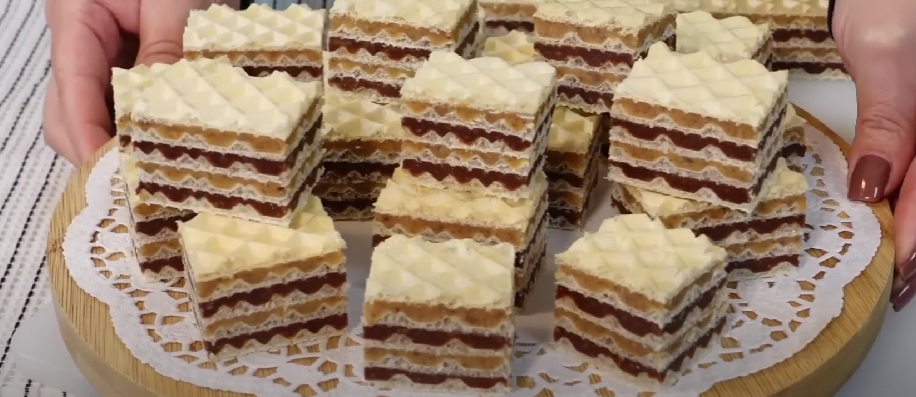 Kore posložite u kalup i namažite prvo čokoladni premaz pa krem i tako sve do vrha. S ostatkom krema ukrasite tortu i pospite orasima po želji.
