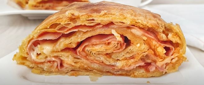 Umutiti jaja, dodati ulje, so, jogurt, brašno i prašak za pecivo, sjediniti. Od fila odvojiti 4-5 kašika za premazivanje rolata. Kore podeliti na 2 dela za 2 rolata. Redjati kore jednu preko druge, svaku mazati filom sa jajima, a na poslednju staviti samo malo fila i celu površinu premazati kečapom, rasporediti preko cele površine i tanko rezanu i narendan kačkavalj. Preklopiti bočne ivice, pa sviti rola. Postupak ponoviti i za drugi rolat, pa oba prebaciti u pleh za pečenje i premazati sa onih 4-5 kašika fila.